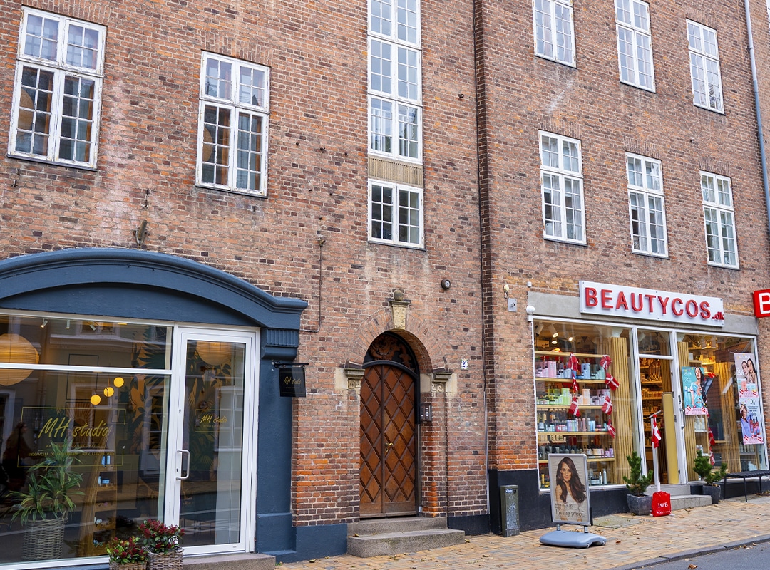 Beliggende på hjørnet af Christiansgade og Palnatokesvej